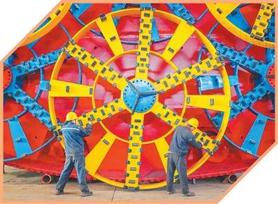 位于江苏扬州市的江都高新技术产业开发区,工人在制造重工设备。