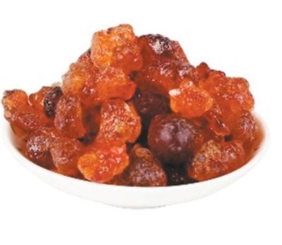 桃胶,也被形容为桃树“流出的眼泪”,具有较高的医用、药用和食用等价值。通常,从树上采摘后的粗桃胶经挑选、修剪后,可以作为初级农产品售卖,也可以被泡发、加工成滋补甜品,例如桃胶银耳羹、桃胶皂角米羹、椰奶炖桃胶等。