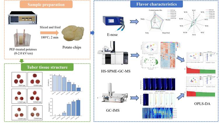 马铃薯是重要的粮食蔬菜兼用作物,既可作为主食,也是健康休闲食品的重要原料,对产业振兴具有重要意义。脉冲电场(PEF)作为一种新兴物理加工技术,已在马铃薯食品预处理中得到广泛应用,可有效改善产品色泽,降低油脂吸收和减少丙烯酰胺等有害物质生成,提升产品品质和健康属性。然而,其对风味形成的影响和调控机制仍缺乏系统研究。