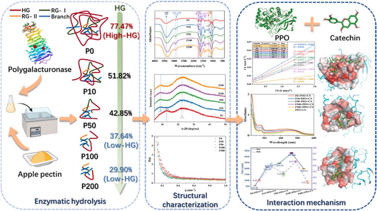 本研究揭示了不同结构果胶与PPO及儿茶素之间的相互作用机制,为通过靶向修饰果胶调控水果体系中的酶促褐变提供了潜在策略。