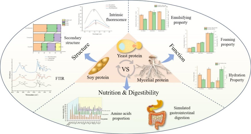 近日,中国农业科学院农产品加工研究所食品生物制造创新团队在新质蛋白研究方面取得重要进展,揭示了菌丝蛋白作为新型替代蛋白相较于大豆蛋白和酵母蛋白在营养、消化及加工品质方面的特性。相关研究成果发表在《食品研究国际(Food Research International)》(JCR一区,IF:8.0)上。中德联合培养25级博士研究生李同庆和刘淑君副研究员为论文共同第一作者,德国尤斯图斯-李比希大学(吉森大学)Holger Zorn教授与辛凤姣研究员为共同通讯作者。
