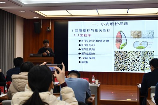 会议吸引了来自全省旱碱麦加工龙头企业技术骨干及相关科研人员共计100余人参加。培训内容紧扣产业实际,涵盖旱碱麦加工竞争力提升策略、蛋白质与淀粉特性分析、麦麸麦胚高值化利用、麦香味在加工链中的传递等前沿课题,系统提升学员理论素养与实践能力。会议特邀中国农业大学尤明山教授、中国农业科学院农产品加工研究所郭波莉研究员、国家粮食和物资储备局科学研究院刘艳香副研究员等权威专家现场授课,专家结合典型案例深入讲解,内容详实、贴近生产,受到参会人员一致好评。