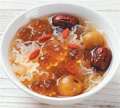 桃胶,也被形容为桃树“流出的眼泪”,具有较高的医用、药用和食用等价值。通常,从树上采摘后的粗桃胶经挑选、修剪后,可以作为初级农产品售卖,也可以被泡发、加工成滋补甜品,例如桃胶银耳羹、桃胶皂角米羹、椰奶炖桃胶等。